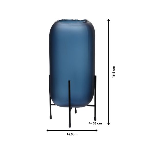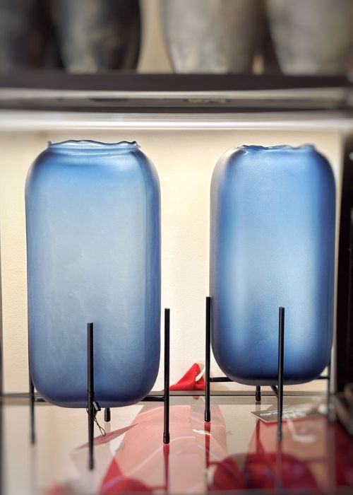 El jarrón Blue combina la elegancia del cristal azul con una base metálica negra que aporta contraste y modernidad. Su diseño refinado se adapta perfectamente a interiores contemporáneos, añadiendo un toque de luz y color. Eleva la decoración con una pieza versátil y sofisticada.