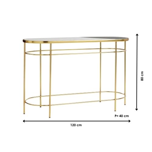 La CREDENZA DEMET es la pieza perfecta para transformar tu recibidor en un espacio elegante y acogedor, con unas dimensiones de 120x40x80 cm, su estructura metálica en un sofisticado color dorado aporta un toque de lujo y modernidad a cualquier ambiente.
